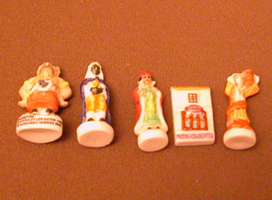 1801年、l’epiphanie(エピファニー:公現祭、三王来朝の祝日)が1月6日と決められた。三王とは、占星術師メルシール、ガスパール、バルタザール、神の子キリストを訪ねて来た東方の三博士である。この宗教的な祭礼の日に、下々の者は乾燥したそら豆、裕福な者は銀貨、金貨の入った大きな焼き菓子を食べ、それがあたった人を王や王妃に選んで祝福した。1870年に陶製のフェーヴが登場、その後、プラスチックや、santon(サントン)と呼ばれる小さな土人形も出て来た。イエスやマリア様や三博士だったのが、今では動物やマンガのキャラクター、車、家、その他さまざまあって楽しい。親指の第一関節ほどのオブジェが、いまやコレクションの対象にもなっているとか。