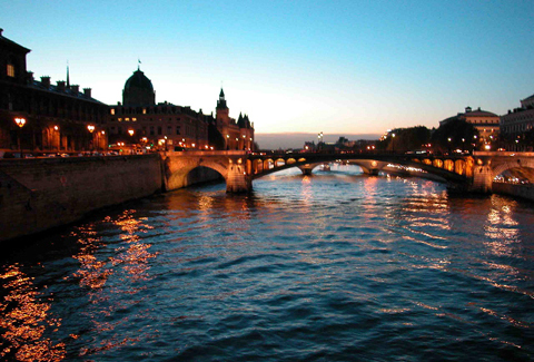 前回みたアルコル橋の約180m下流に架かっている一見地味なつぎはぎの橋。ここは古代から人々がセーヌ川を渡っていた場所である。右岸と左岸をつなぐパリで一番古い通りがシテ島の真ん中を走っている。その名もシテ通り、その両端はセーヌ川に出て、そこから反対側の岸に出る二つの橋を、川幅の大きさによって区別し、右岸に渡る橋をグラン・ポン(Grand Pont:大きい橋の意)、左岸に渡る橋をプティ・ポン(Petit Pont:小さい橋)と呼んでいた。どちらもパリで一番古くから橋が架かっていたところである。