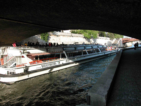 橋を渡って左手のモンテベロ河岸にはカフェ・バー・レストランが並ぶ。どんなに寒くてもテラスで語らう人たちの目の前にはやはりノートルダムがある。観光客で一杯だ。となりはレストラン、そのとなりはイギリス人経営のシェイクスピア&Co. という英語本専門の古本屋だが、何となくいわくありげな老人やパンクの若者など雑多なお客でにぎわっている。そう遠くないところにカナダの古本屋あり、イギリス式ティールームあり、パブ形式のバーも多く、カフェ・バーでは毎晩ジャズライブをやっている。建物も古い歴史地域のせいでここら辺は英語圏の人のお気に入りなのだろうか。ハローとギャルソンがすぐに英語で話しかけてくる。